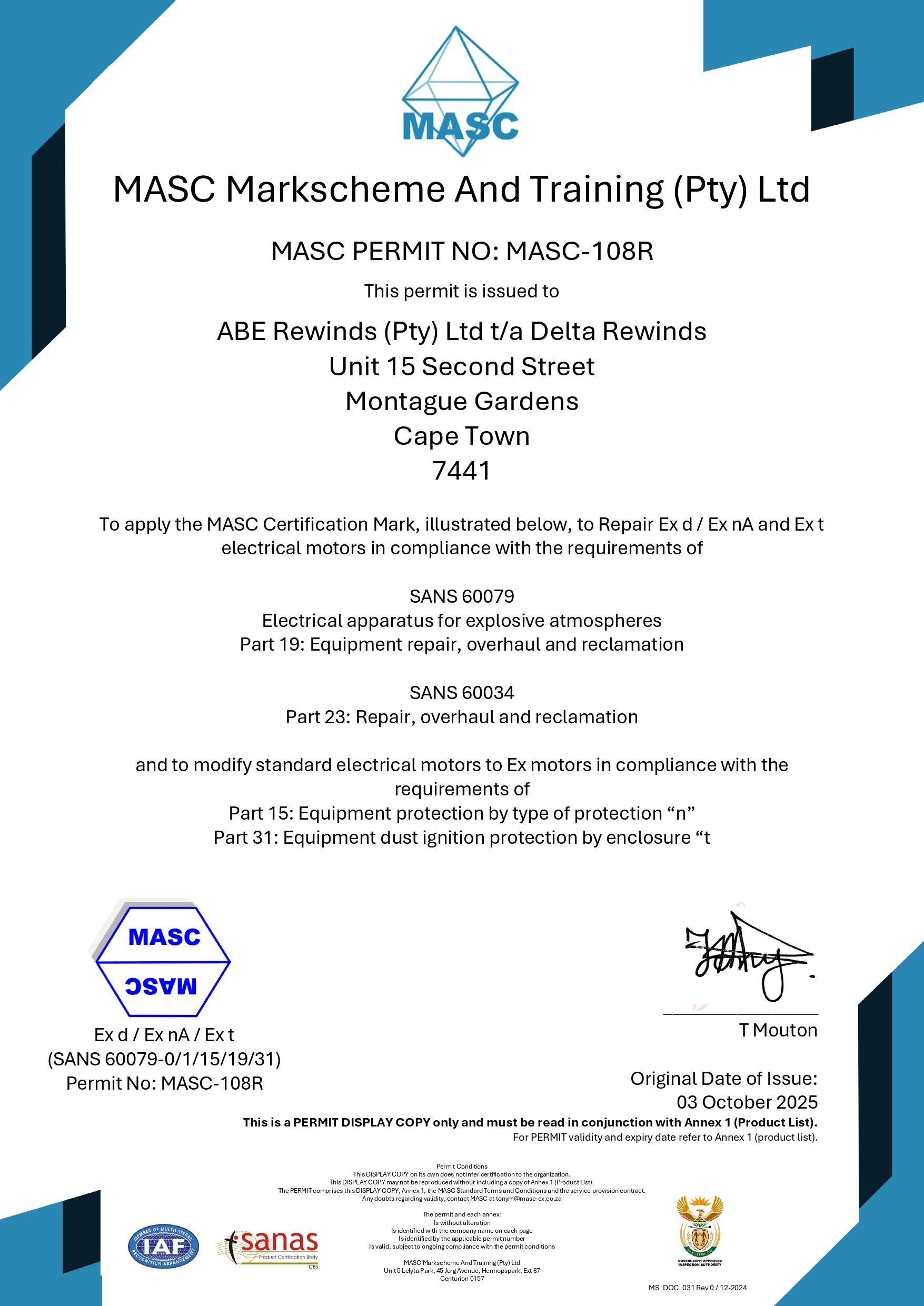 Delta Rewinds has distinguished themselves. They have a good track record and ascribe to sound business principals which makes dealing with them an absolute pleasure. I do not hesitate to recommend them to anybody requiring specialized motor and pump repairs and for this tender in particular.